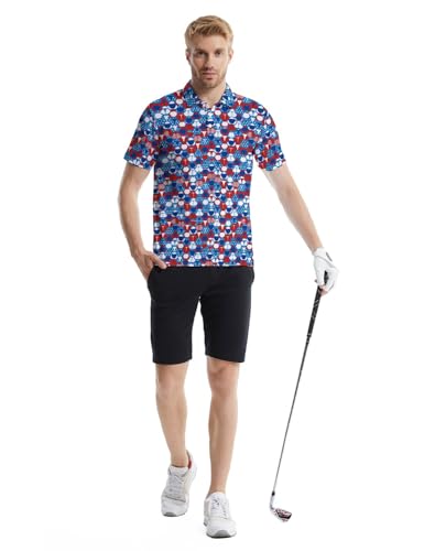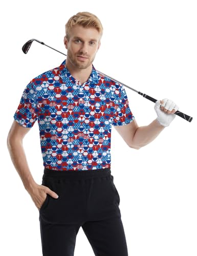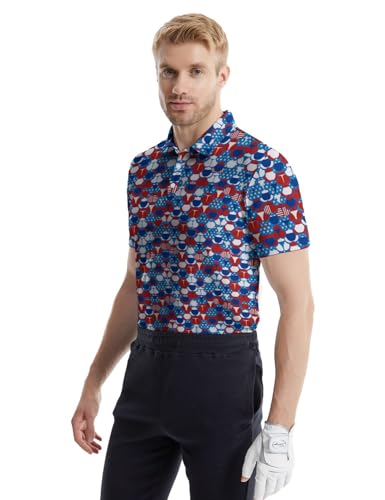 Men‘s Funny Polo Shirts Flashes 80S Golf Shirts Quick-Dry Moisture Wicking Polo Shirts Funny Short Sleeve Golf Polo Shirts