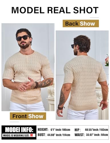 Specification: Men’s Knit Polo Shirts Short Sleeve Texture Henley Shirts Knitted T-Shirts Casual Lightweight Golf Shirts