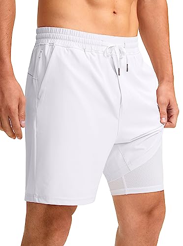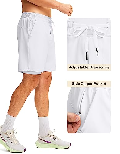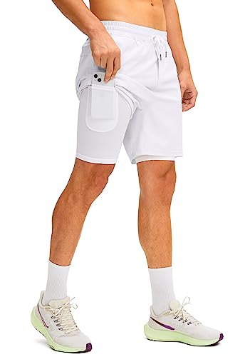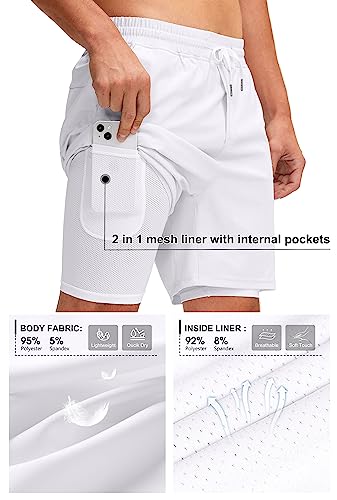 Soothfeel Men’s 2 in 1 Running Shorts with Liner 7 Inch Training Gym Athletic Workout Shorts for Men with Zipper Pockets