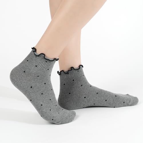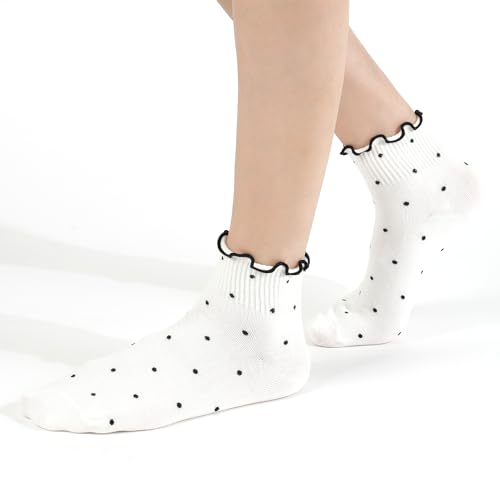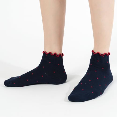 Women Ankle Socks | 4-6 Pairs Ruffle Dot Frilly Heart Design Cute Bear Fruit Emoji Print Low & Mid Cut Cotton Socks | US 6-8