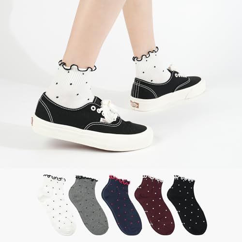 Specification: Women Ankle Socks | 4-6 Pairs Ruffle Dot Frilly Heart Design Cute Bear Fruit Emoji Print Low & Mid Cut Cotton Socks | US 6-8