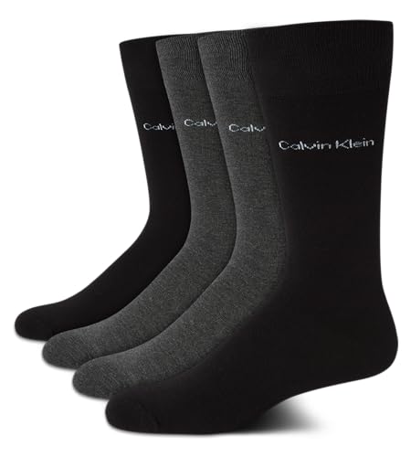 Calvin Klein Men’s Dress Socks – Cotton Blend Crew Socks: Patterns and Solids (4 Pack)