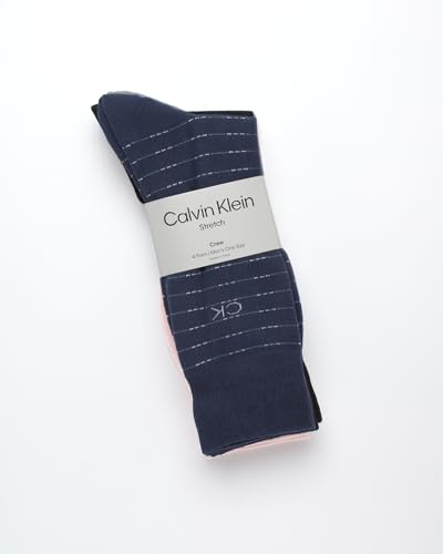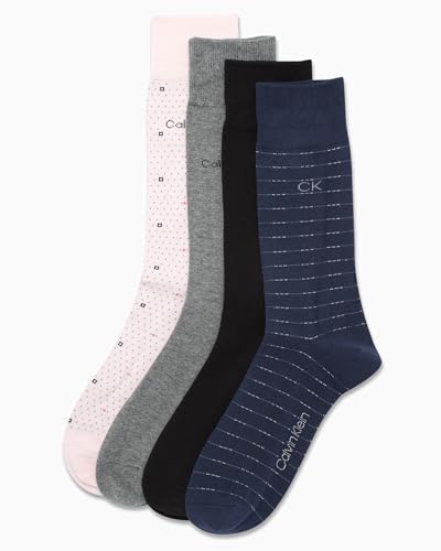 Calvin Klein Men’s Dress Socks – Cotton Blend Crew Striped Socks (4 Pack)