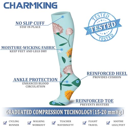Specification: CHARMKING 6 Pairs-Compression Socks for Women & Men Circulation Best Support for Nurses, Running, Athletic,Flight Travel