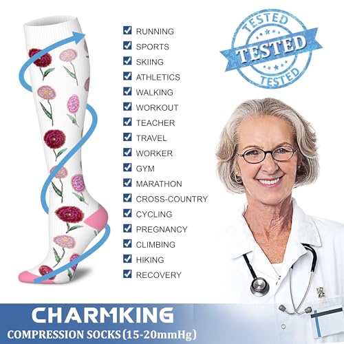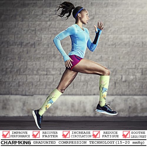 CHARMKING 6 Pairs-Compression Socks for Women & Men Circulation Best Support for Nurses, Running, Athletic,Flight Travel