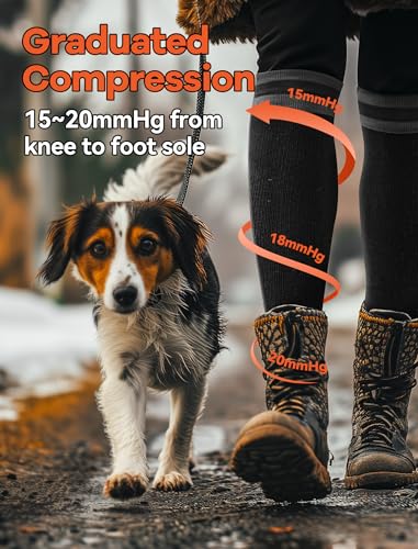 Merino Wool Compression Socks for Women Men (2/3 Pairs) Knee High Winter Thermal Thick Warm for Nurse Pregnant Travel