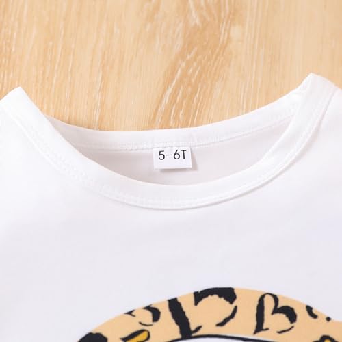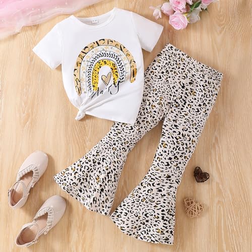 Ayzozuy Kids Toddler Girl Clothes Letter Print Graphic Top + Leopard Print Flare Leg Pants 2PC Summer Clothing Set