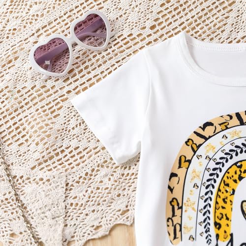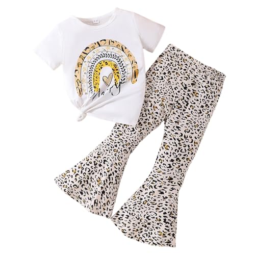 Specification: Ayzozuy Kids Toddler Girl Clothes Letter Print Graphic Top + Leopard Print Flare Leg Pants 2PC Summer Clothing Set