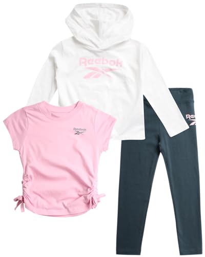 Reebok Girls’ Legging Set – 3 Piece Performance Long Sleeve T-Shirt, Tee, and Leggings – Active Set for Toddlers/Girls, 2T-6X