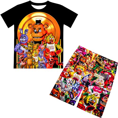 Boys Five Horror Bear Shirt Set Little Kids Cartoon Movie Game Tee Top 2PCS Short Sleeve Clothes Outfit