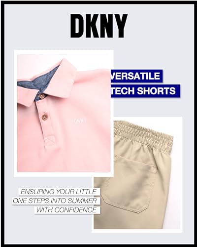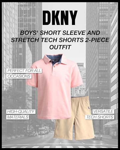 DKNY Boys’ Shorts Set – 2 Piece Short Sleeve Polo Shirt and Stretch Tech Shorts – Summer Outfit Set for Toddler Boys (2T-7)