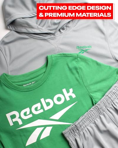 Reebok Boys’ Active Shorts Set – 3 Piece Performance Mesh Hoodie Sweatshirt, Gym Shorts, and T-Shirt – Activewear Set (8-12)