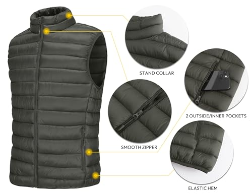 Men’s Puffer Vest Zipper Sleeveless Jacket Winter Outerwear Windproof Lightweight Warm Down Vests with Pockets