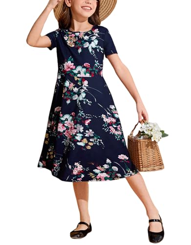 21KIDS Girl Maxi Dress Floral Short Sleeve Dresses with Pockets for Girls 6-14 Years