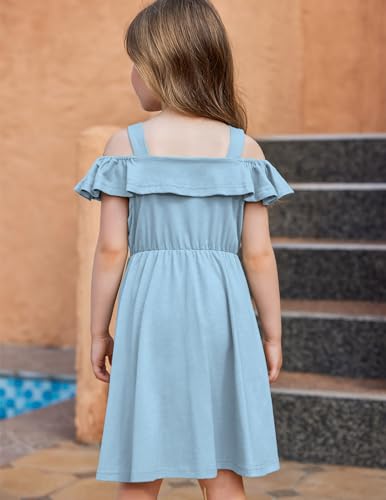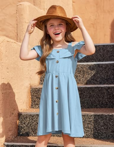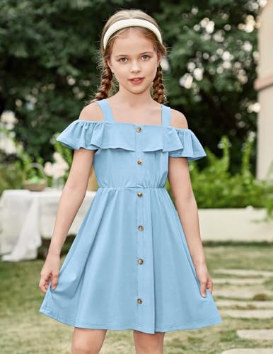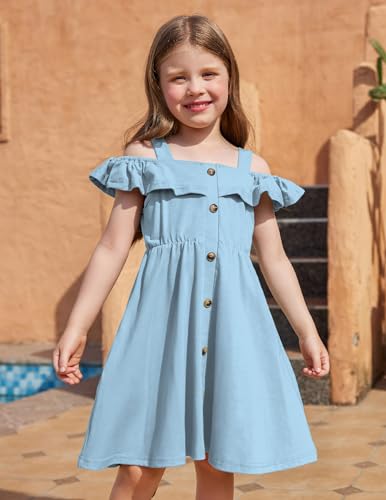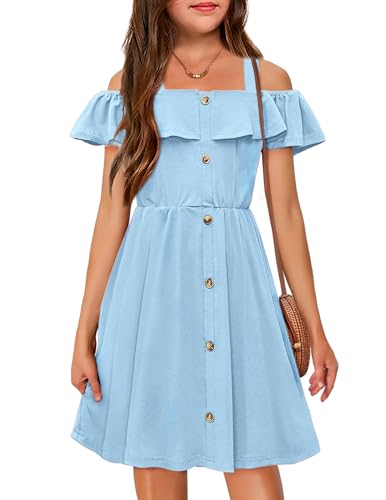 Arshiner Girls Dresses Summer Spaghetti Strap Cold Shoulder Ruffle Button Down A Line Dresses