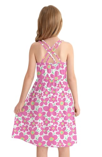 BesserBay Girls Summer Sleeveless Criss Cross Swing Midi Dress with Pockets 4-14 Years