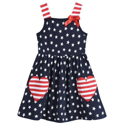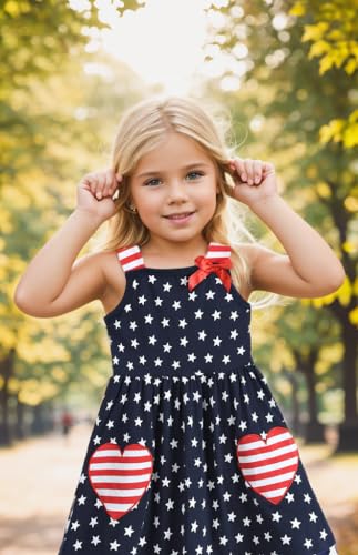 CM-Kid Little Girls Dress Summer Toddler Girl Clothes 4th of July Dress Kids 2-8 Years