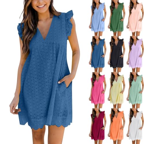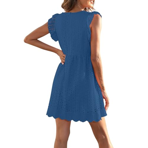 Specification: Eyelet Dress for Women 2024 Y2K Dress Sleeveless Ruffle V Neck Hollow Loose Mini Dress Boho Beach Vacation Sundress