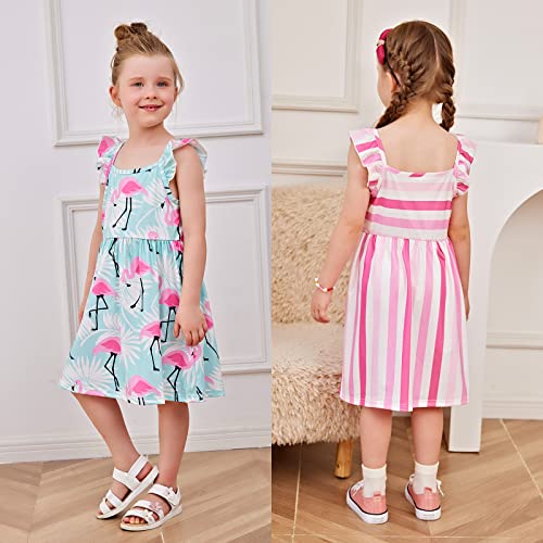 PATPAT Multipack Girl Toddler Dresses Sleeveless Flamingo Striped Toddler Casual Dresses Multicoloured