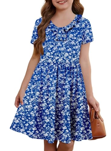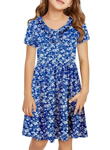 Yoklass Girls Summer Stretchy Dress A line Twirly Skater Dresses with Pockets 5-14 Years