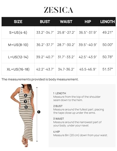 Specification: ZESICA Women’s Summer Striped Bodycon Midi Dresses 2024 Casual Sleeveless Scoop Neck Ribbed Knit Beach Vacation Long Dress