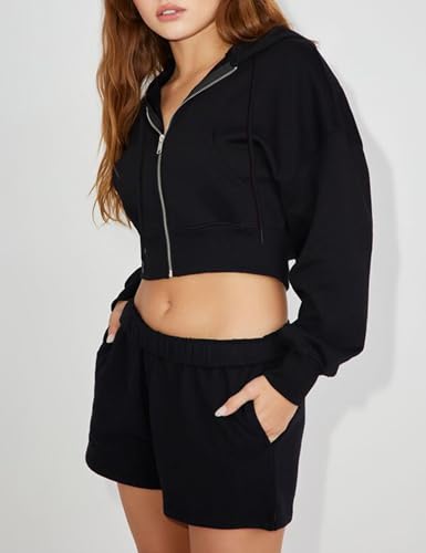 Hooever Womens Cute Workout Cropped Zip Up Drawstring Hoodie Sweatshirt Jacket