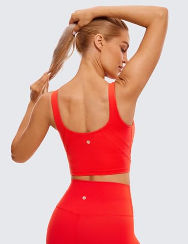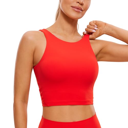 CRZ YOGA Butterluxe Womens High Neck Longline Sports Bra – U Back Padded Crop Workout Tank Top with Built in Bra