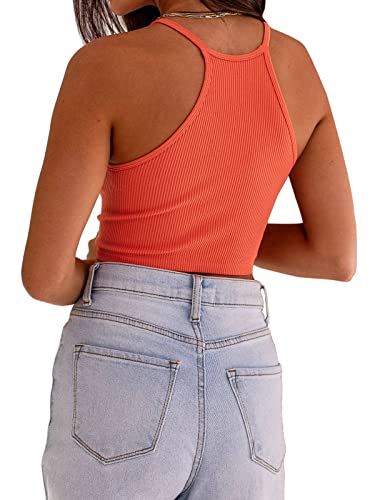 PINKMSTYLE Women’s Spaghetti Strap Halter Cropped Tank Tops Basic Rib-Knit Camisole Crop Top