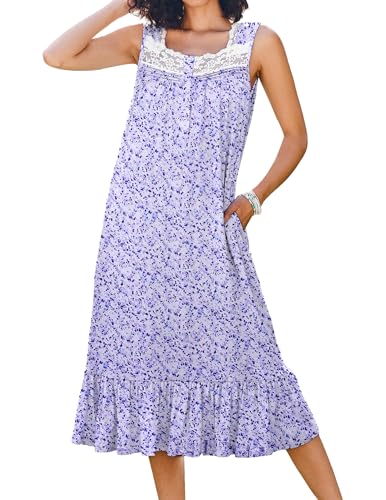 Specification: Ekouaer Women’s Nightgowns Victorian Long Sleeveless Night Gown with Pockets Lace Trim Button Up Nightdress S-XXXL