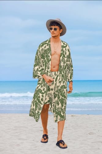 Specification: COOFANDY Men Lightweight 2 Piece Kimono Robe with Shorts Japanese 3/4 Sleeve Robes Casual Open Front Long Cardigan With Belt