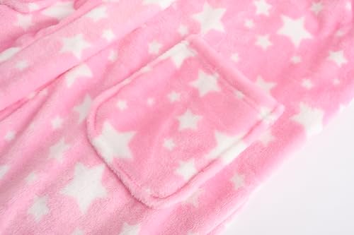 Kids’ flannel hooded robe for 1-14 years. Unisex cute patterns and hooded design, soft and lightweight fabric.