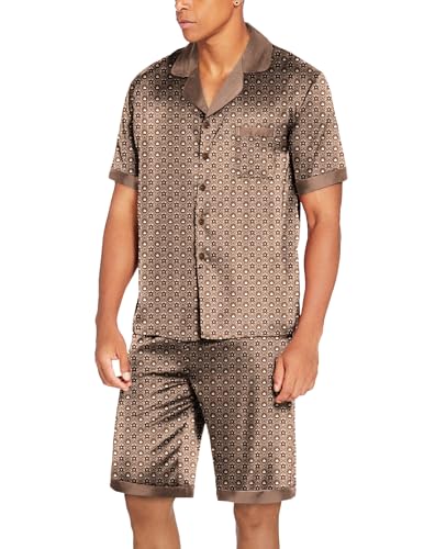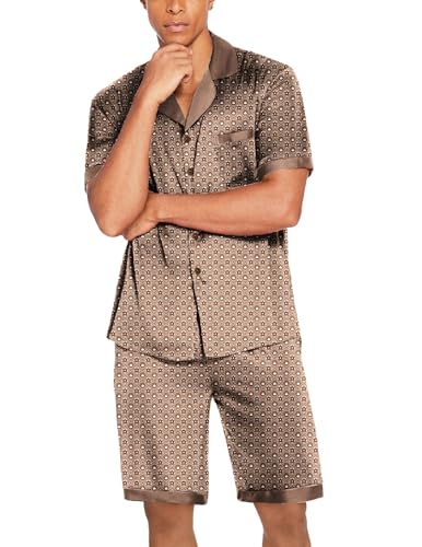 Specification: Ekouaer Men Satin Silk Pajamas Set with Pockets Sleepwear Shorts Satin Summer Loungewear 2 Piece Button Down Set S-XXL