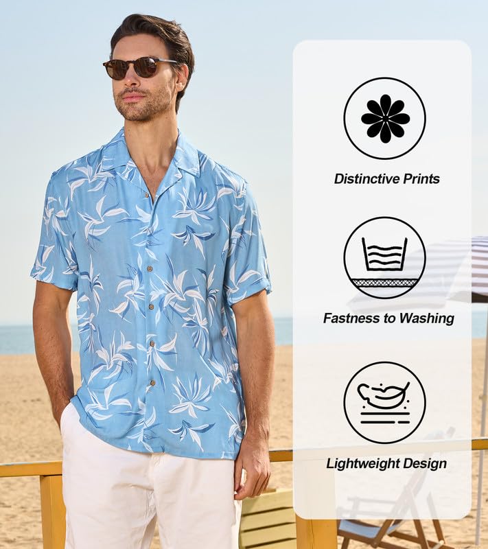 Damipow Mens Unique Pattern Hawaiian Shirt Beach Tropical Button Up Shirts Vacation Cruise Hawaii Summer Clothes