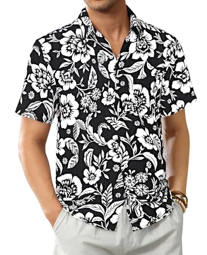 Specification: DEMEANOR Hawaiian Shirt for Men Short Sleeve Floral Button Down Shirt Tropical Hawaiian Shirts Casual Linen Shirts Beach