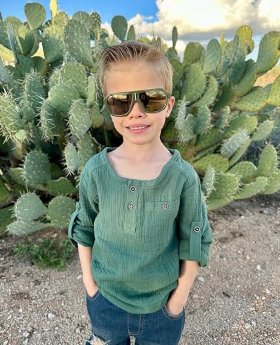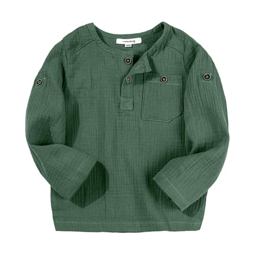 Volunboy Toddler Boys Henley Long Sleeve Cotton Linen Shirt Kids Beach Casual Button Down Tops 18 Months to 7 Years