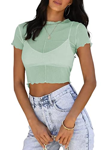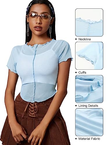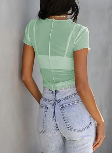 Allytok Mesh Crop Tops for Women Summer Short Sleeve Crewneck Sheer See Through Y2K Tee Shirts