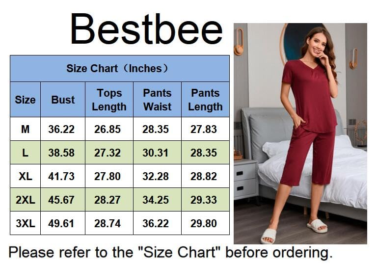 Specification: Bestbee Womens Pajama Set, 2 Piece Lounge Outfits Summer Sleep Set V Neck Short Sleeve Pant With Pockets Ladies Pjs Set