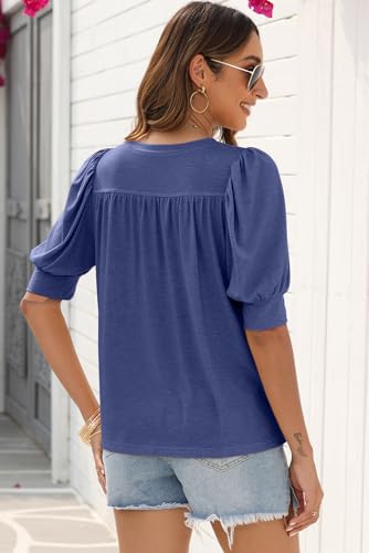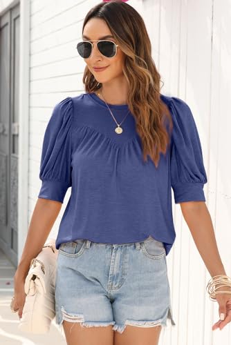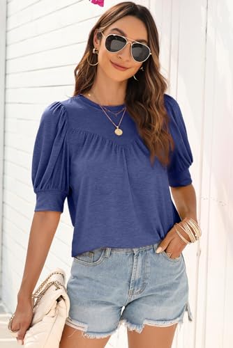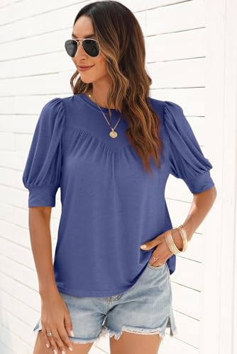 Specification: EVALESS Women’s Puff Short Sleeve Tops Casual Summer Crewneck Knit Pleated Solid Loose Basic T Shirts Tee Blouses Outfits