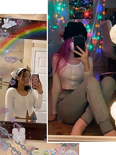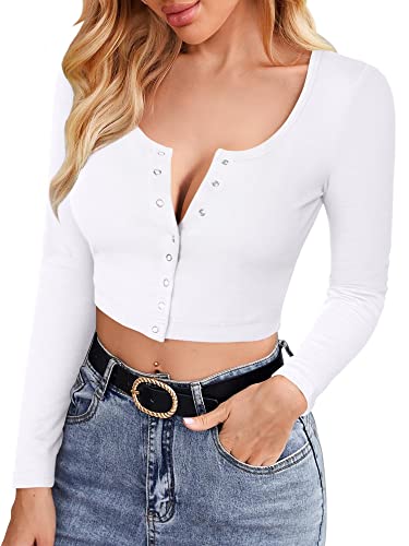 Specification: FENSACE Womens Button Down Long Sleeve Crop Top Basic Knit Slim Fit T-Shirt XS-XL