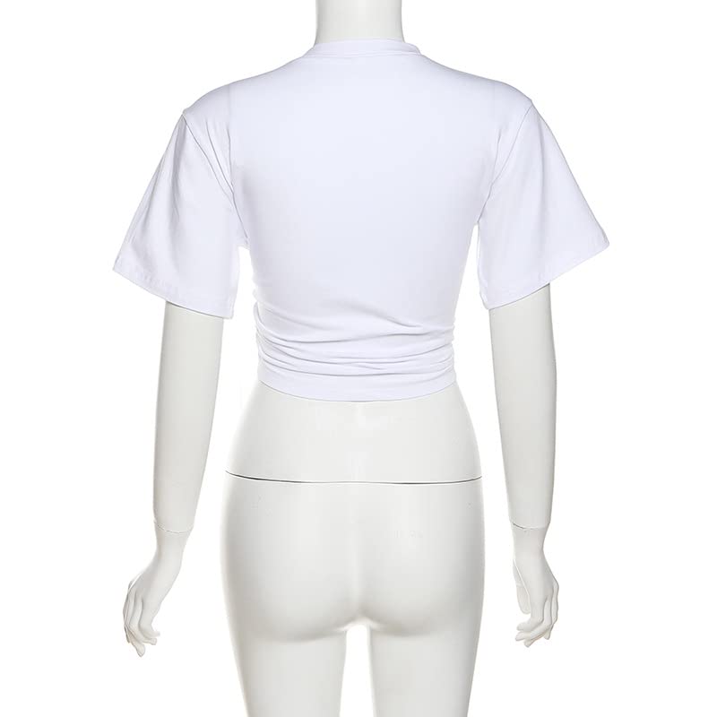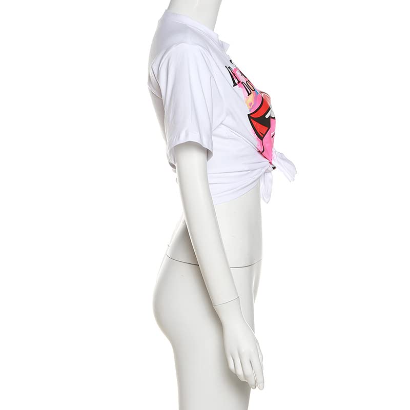 Specification: LuFeng Women’s Sexy Print Embroidery Summer Short Sleeve Lace Up Crop Top Open Tie Front V Neck Blouses T Shirts