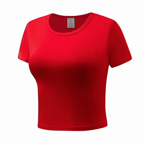 Specification: OThread & Co. Women’s Short Sleeve Crew Neck Crop Top Basic Comfy Stretch Tee