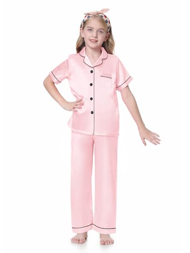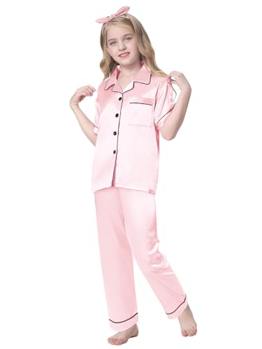 Specification: Schbbbta Girls 3 Pieces Pajamas Sets Silk Satin Sleepwear Button Down Short Sleeve Pjs Outfits