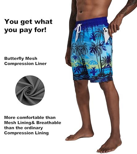difficort Mens Swim Trunks with Compression Liner Quick Dry Bathing Suits Shorts with Zipper Pockets