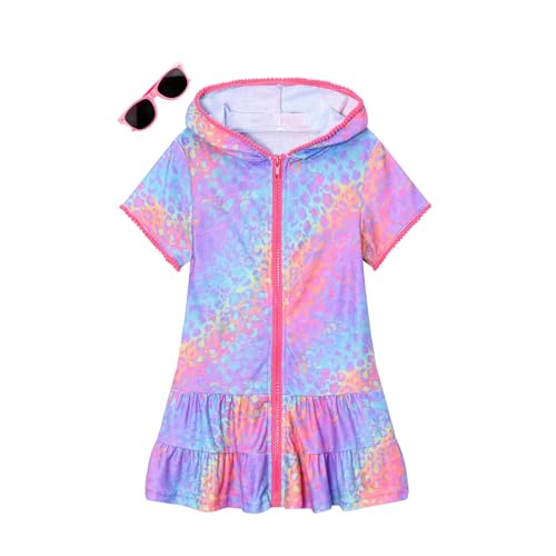 Specification: LUCKYGAL Girls Swim Cover Up Kids Swimsuit Coverup Terry Zip-Up Beach Bathing Suit Wraps with Sunglasses