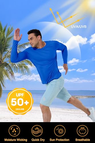 Specification: KEFITEVD Men’s UV Sun Protection UPF 50+ Shirts Long Sleeve Rash Guard Workout Quick Dry Shirt for Hiking Fishing Swimming