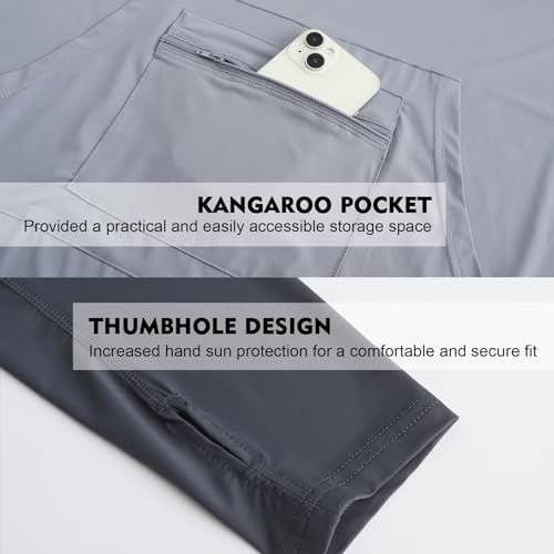 UPF 50+ Sun Protection Hoodie Shirt Rash Guard Long Sleeve Shirt Kangaroo Pocket Ice-Cool Quick Dry Shirts