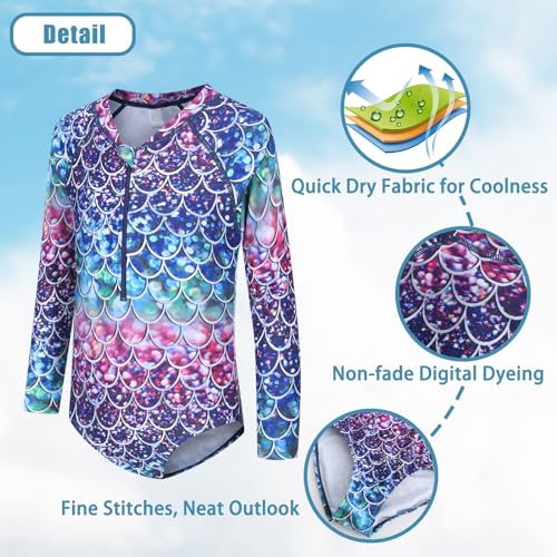 Specification: Zestonie Girls Long Sleeve Rash Guard One Piece Swimsuits for Kids Tie Dye Bathing Suit UPF 50+ Swim Shirts 3-16 Years