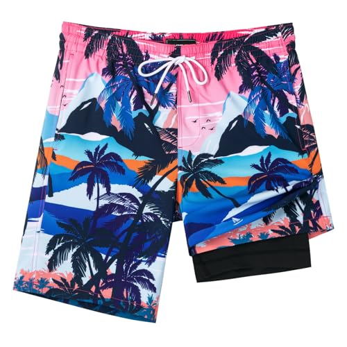 SURF CUZ 9″ Mens Swim Trunks with Compression Liner Swimming Shorts 2 in 1 Stretch Quick Dry Zipper Pockets