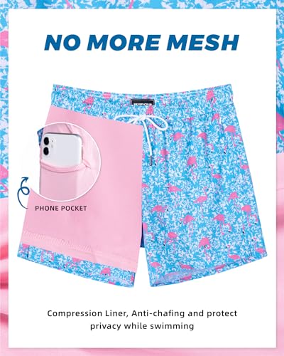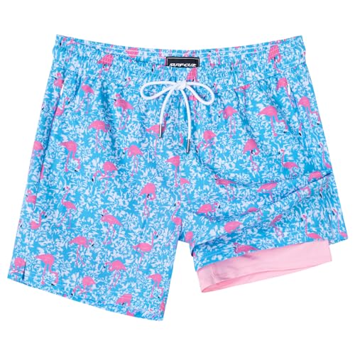 SURF CUZ Mens Swim Trunks with Compression Liner 5″ Swim Shorts Quick Dry Bathing Suit Swimming Trunks Zipper Pockets
