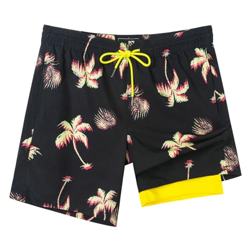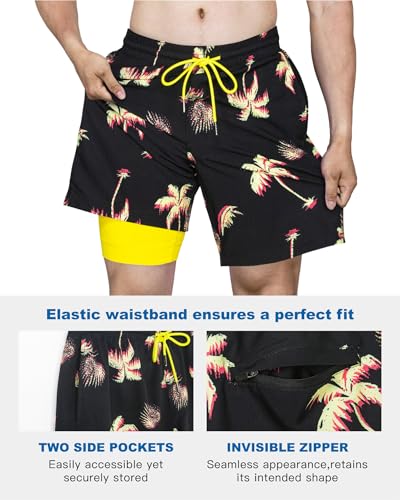 SURF CUZ Mens Swim Trunks with Compression Liner Quick Dry Swim Shorts 7″ Swimming Trunks Stretch Bathing Suit Zipper Pockets